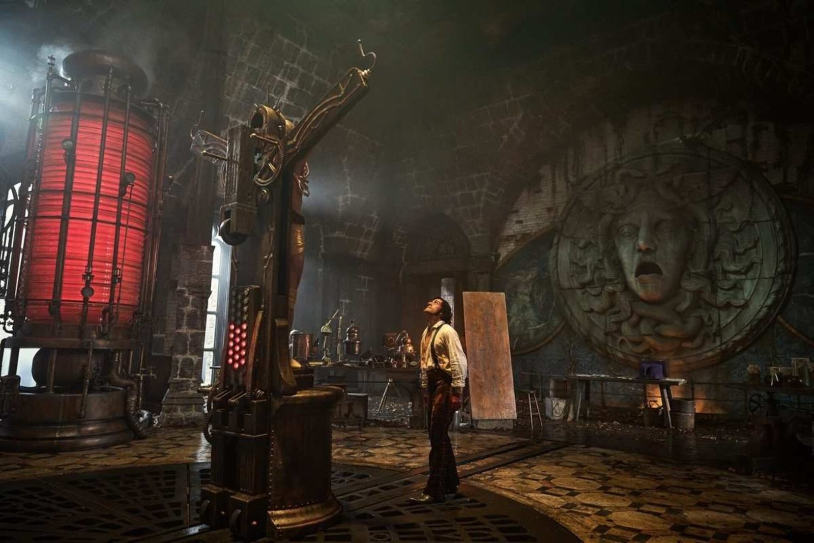 Visualmente, Frankenstein es una joya. Guillermo Del Toro opta por un maquillaje real y meticuloso por encima del CGI, logrando que la criatura evolucione ante nuestros ojos: se ve cómo crece su cabello, cómo la piel cambia y se degrada, como si cada plano respirara vida propia.